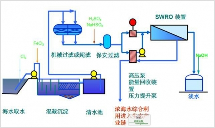 無論是海水淡化,還是苦咸水脫鹽,給水預處理是保證反滲透系統長期穩(wěn)定運行的關鍵。在制定海水預處理方案時應充分考慮到:海水中存在大量微生物、細菌和藻類。海水中細菌、藻類的繁殖和微生物的生長不僅會給取水設施帶來許多麻煩,而且會直接影響海水淡化設備及工藝管道的正常運轉。周期性漲潮、退潮,海水中夾帶大量泥沙,濁度變化較大,易造成海水預處理系統運轉不穩(wěn)定。海水具有較大腐蝕性,對系統中所采用的設備、閥門、管道件的材質要作一定篩選,耐腐性能要好。